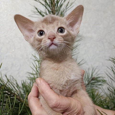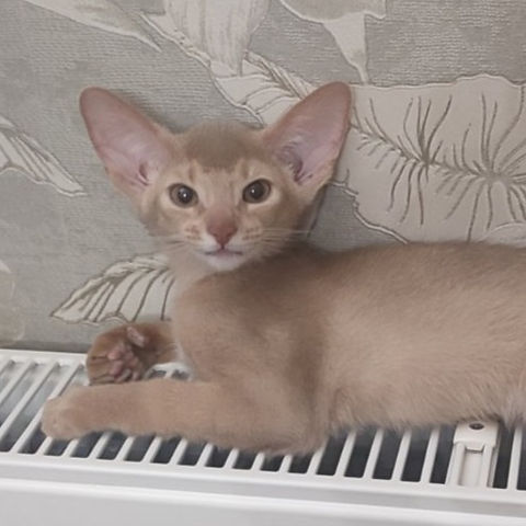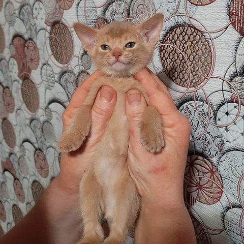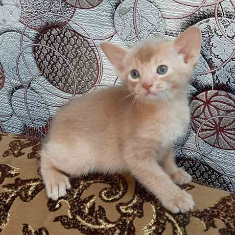 Meet Simba, an adorable purebred Abyssinian male with a soft fawn coat that beautifully displays the breed’s signature ticked pattern. His light, creamy tones give him a rare and refined appearance, while his bright orange eyes and compact, developing frame highlight his youthful charm. Though still small, Simba already shows the elegant posture and alert expression that define the Abyssinian breed.